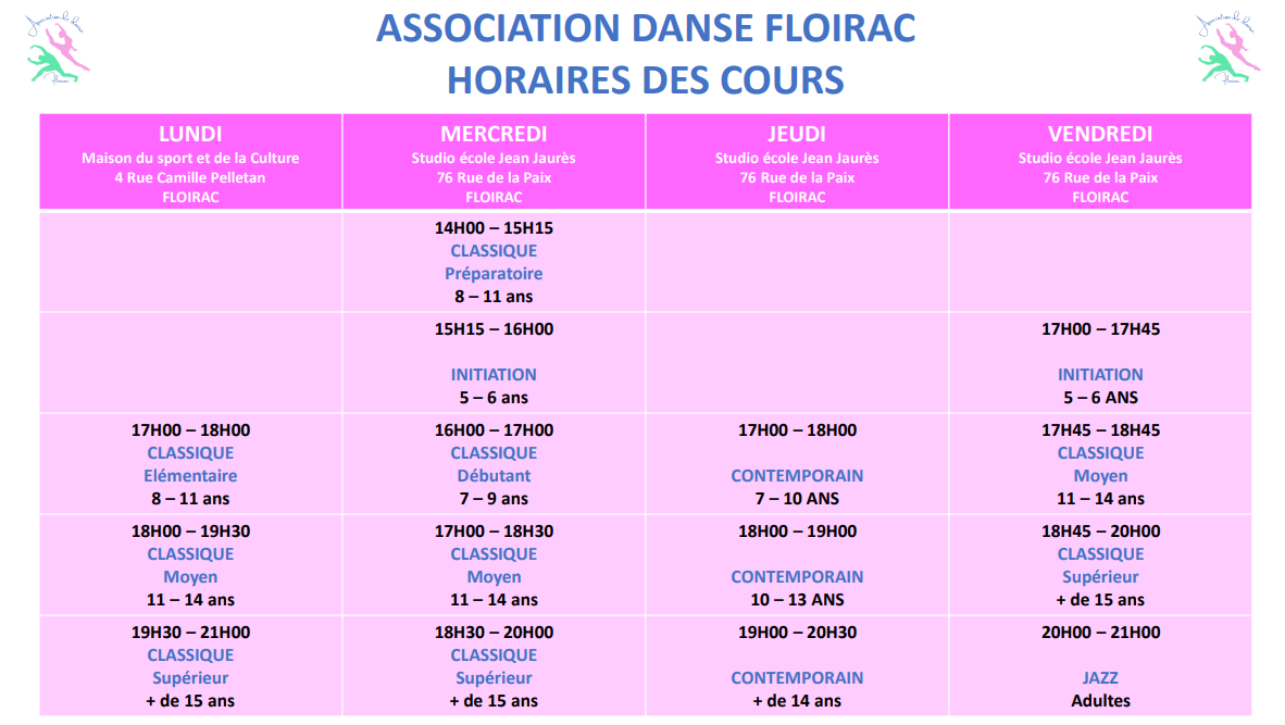 L’association Danse Floirac propose des cours de danse classique, de contemporain et de jazz dès 5 ans.